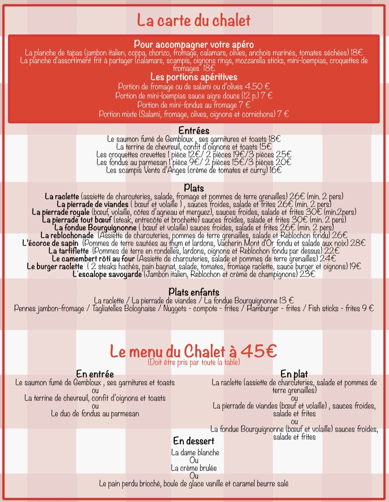 Carte uniquement servie dans le chalet à partir du 29 octobre à début mars 2026.